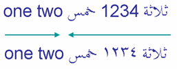 Because it is weakly typed, the number is seen as part of the Arabic text, so the two Arabic words that surround the number are treated as part of the same directional run – even though the sequence of digits runs LTR on screen.