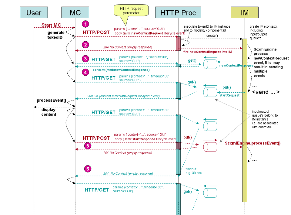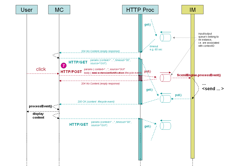 The HTTP processor of the Interaction Manager is expected to handle HTTP/GET requests (which are used by the Modality Component to receive lifecycle events) as following: