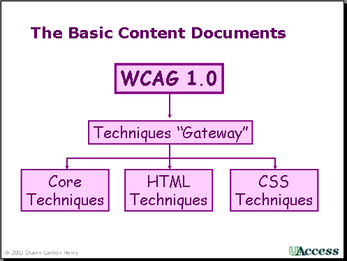 - illustrate WCAG1.0 Techniques documents relationship - specifically to